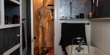 The latest chapter emerging from Inner Fears: Portrait of a Teller’s Fortune takes the form of Madame B's Tarot Reading (2023) through my envisioning of the major arcana. My visual language continues defining campiness. As the viewer steps into a minimalist world that suspends reality and plays on campy stereotypes, the respectful recreations of the major arcana come to life in a kitschy sort of way.